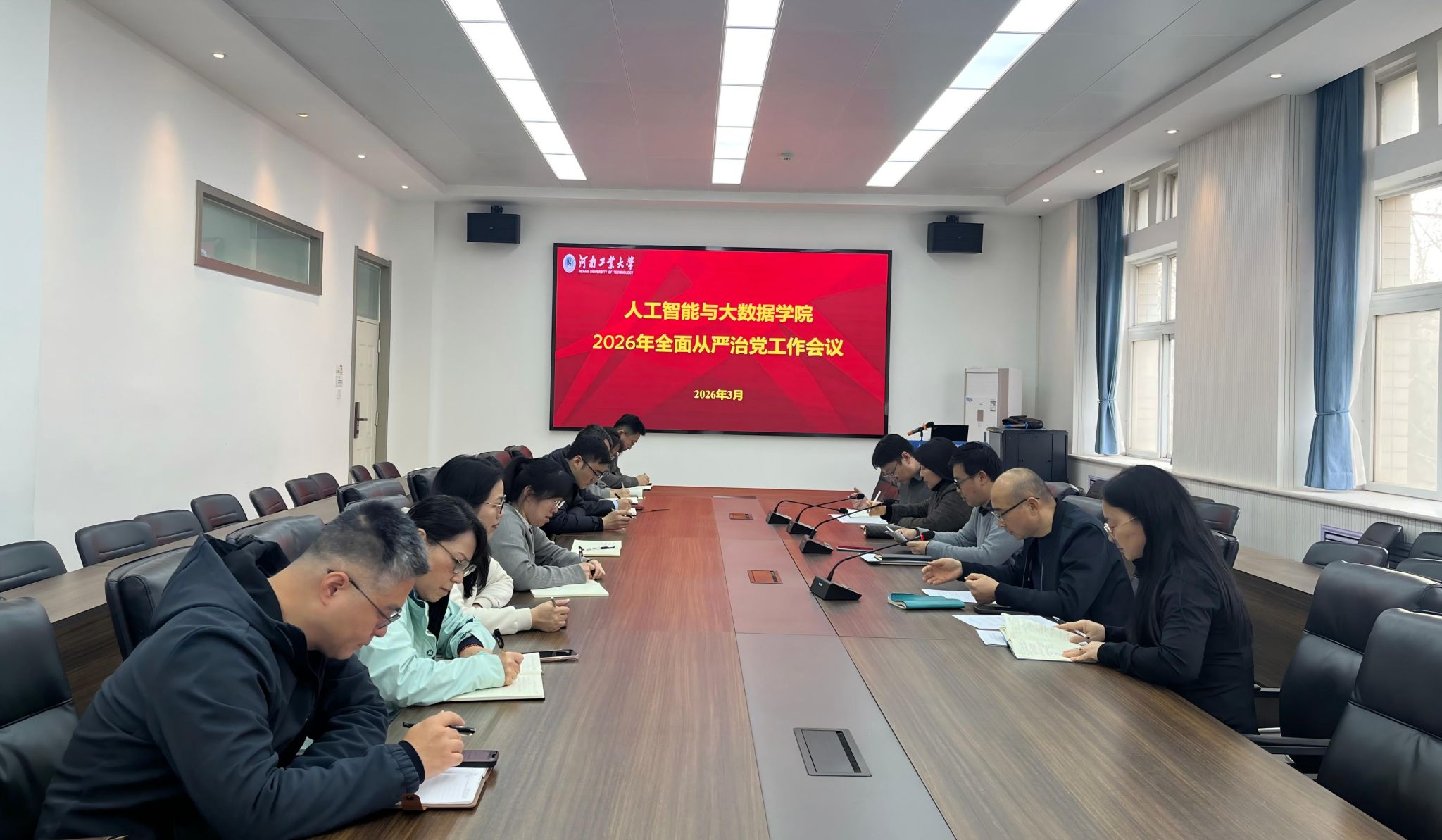 在6369会议室召开2026年全面从严治党工作会议,部署学院2026年全面从严治党工作。学院班子成员、党委委员,各系、科室负责人及党支部书记参加会议,学院院长樊超主持会议。