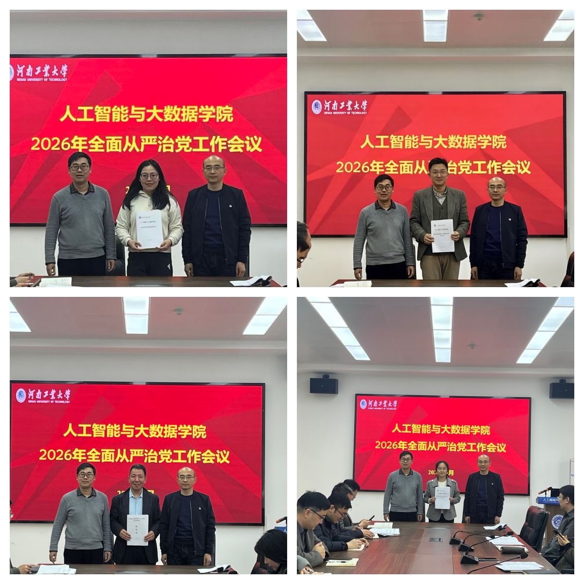 会议现场举行责任书签字仪式,各系、科室及党支部签订《2026年党风廉政建设责任书》《2026年安全目标管理责任书》《2026年意识形态工作责任书》。