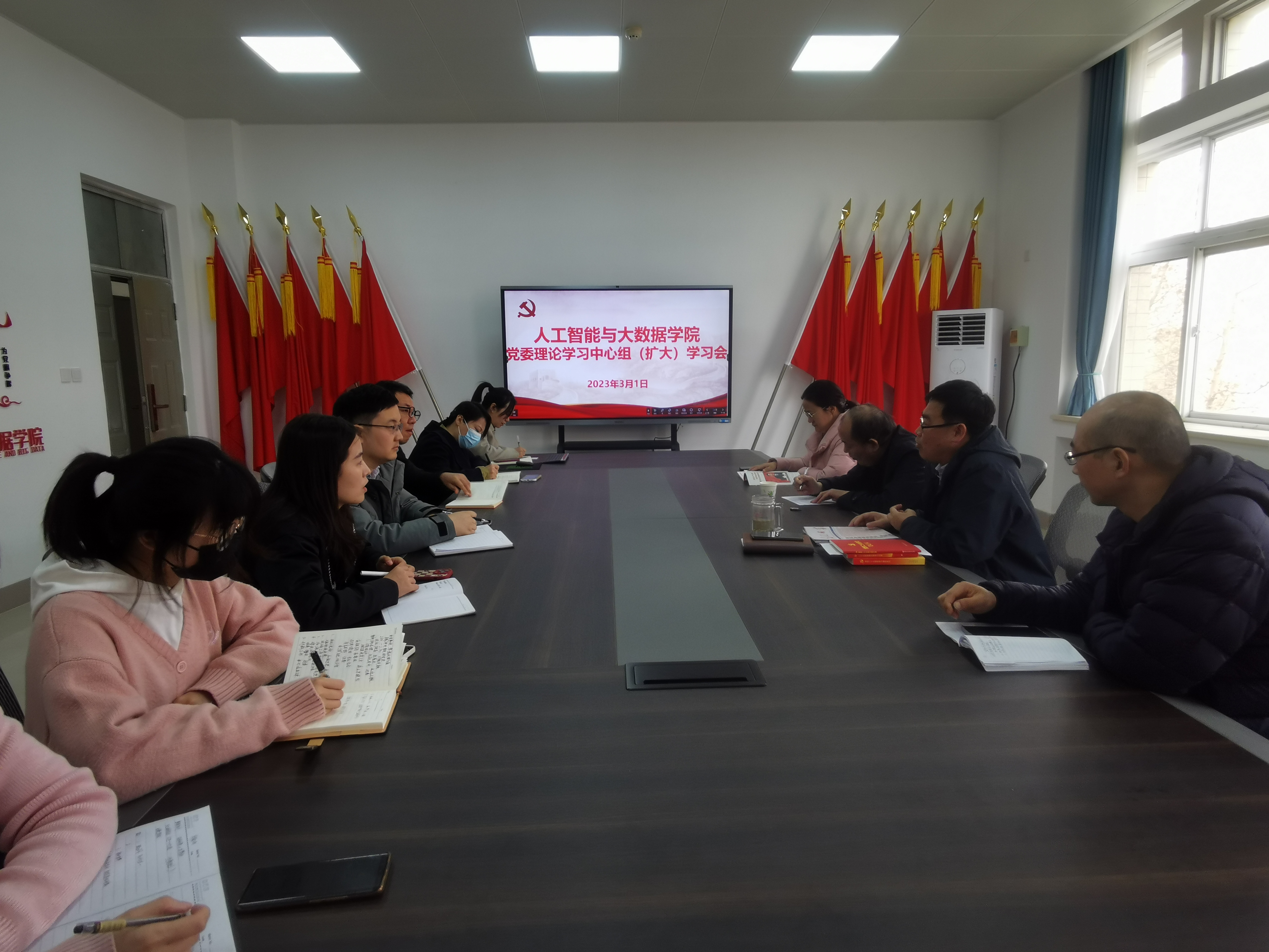 党委理论学习中心组(扩大)在6371会议室举行集体学习交流。校正处级组织员赵云平莅临指导,学院班子成员、各科室负责人、各党支部书记参加会议。会议由学院党委书记杜鹏主持。