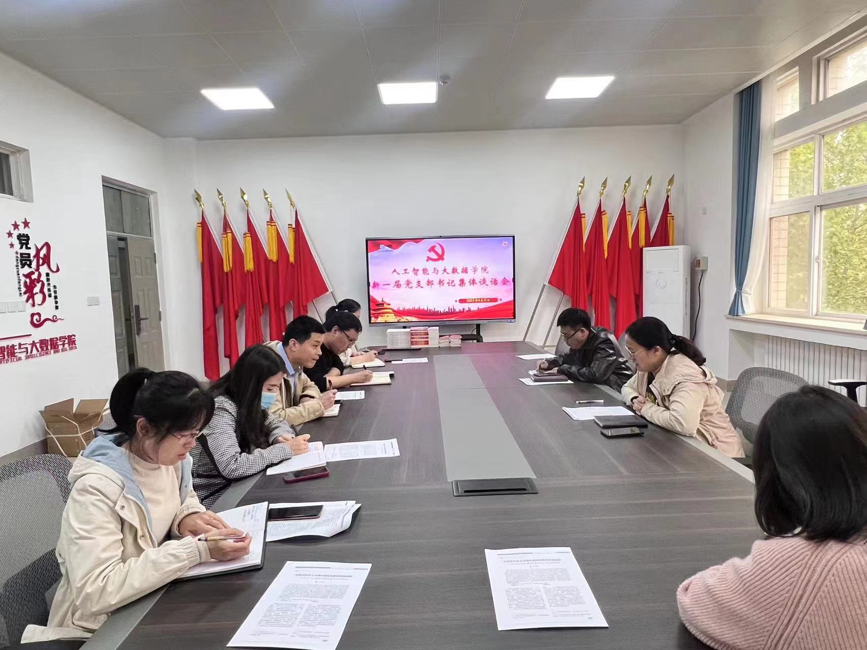 在6371会议室举行新任党支部书记集体谈话会。学院党委书记杜鹏、党委副书记薛运侠、各党支部书记参加会议,会议由杜鹏主持。