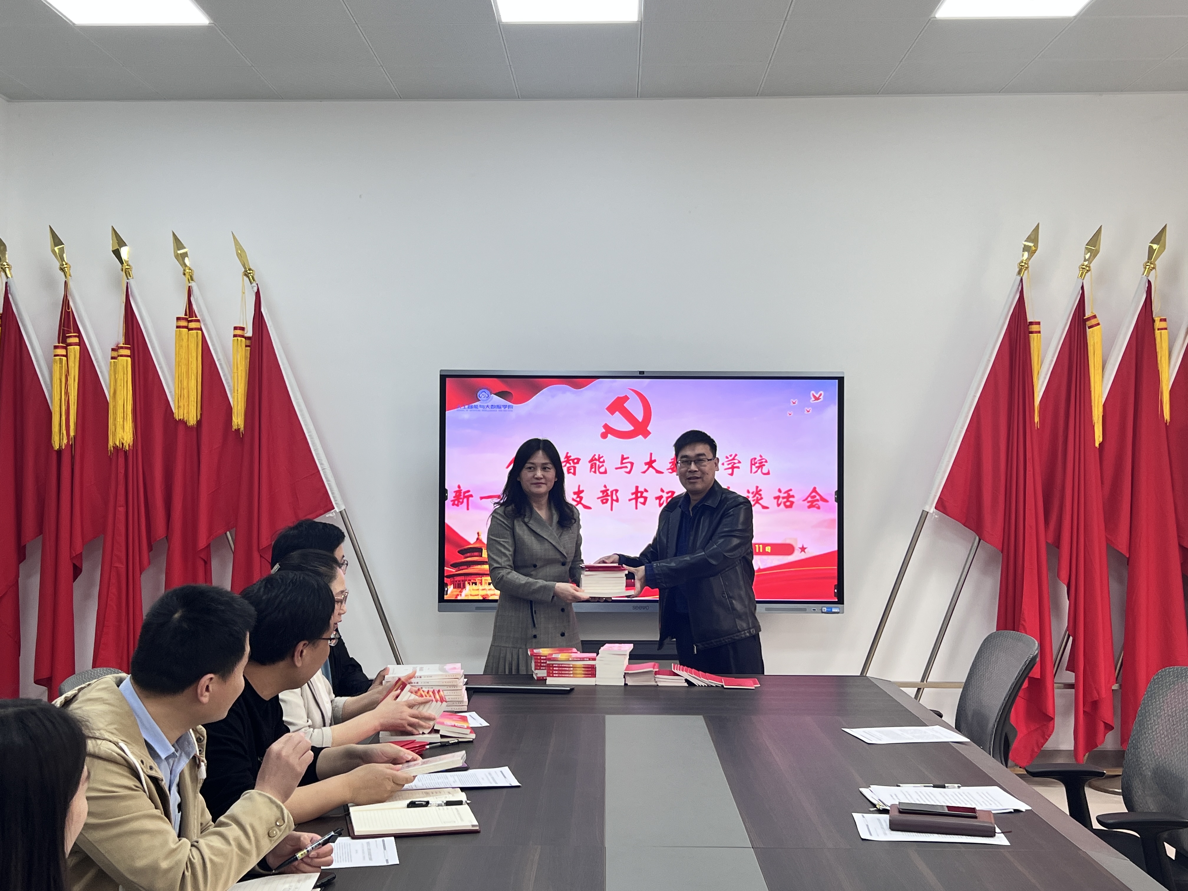 学院党委还向每位新任党支部书记赠送了《党支部书记实用手册》,向各支部赠送了《党的二十大文件汇编》、《中国共产党章程》、学习记录本等学习资料。