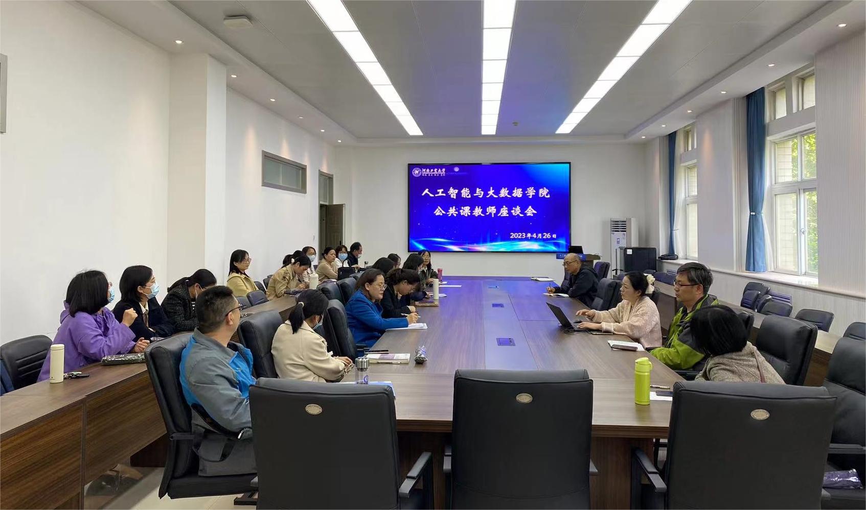 于4月26日下午15:00在6369会议室召开了2022-2023-2学期期中教学检查公共课教师座谈会。座谈会由樊超副院长主持,共计20多位公共课教师代表参加了本次座谈会。