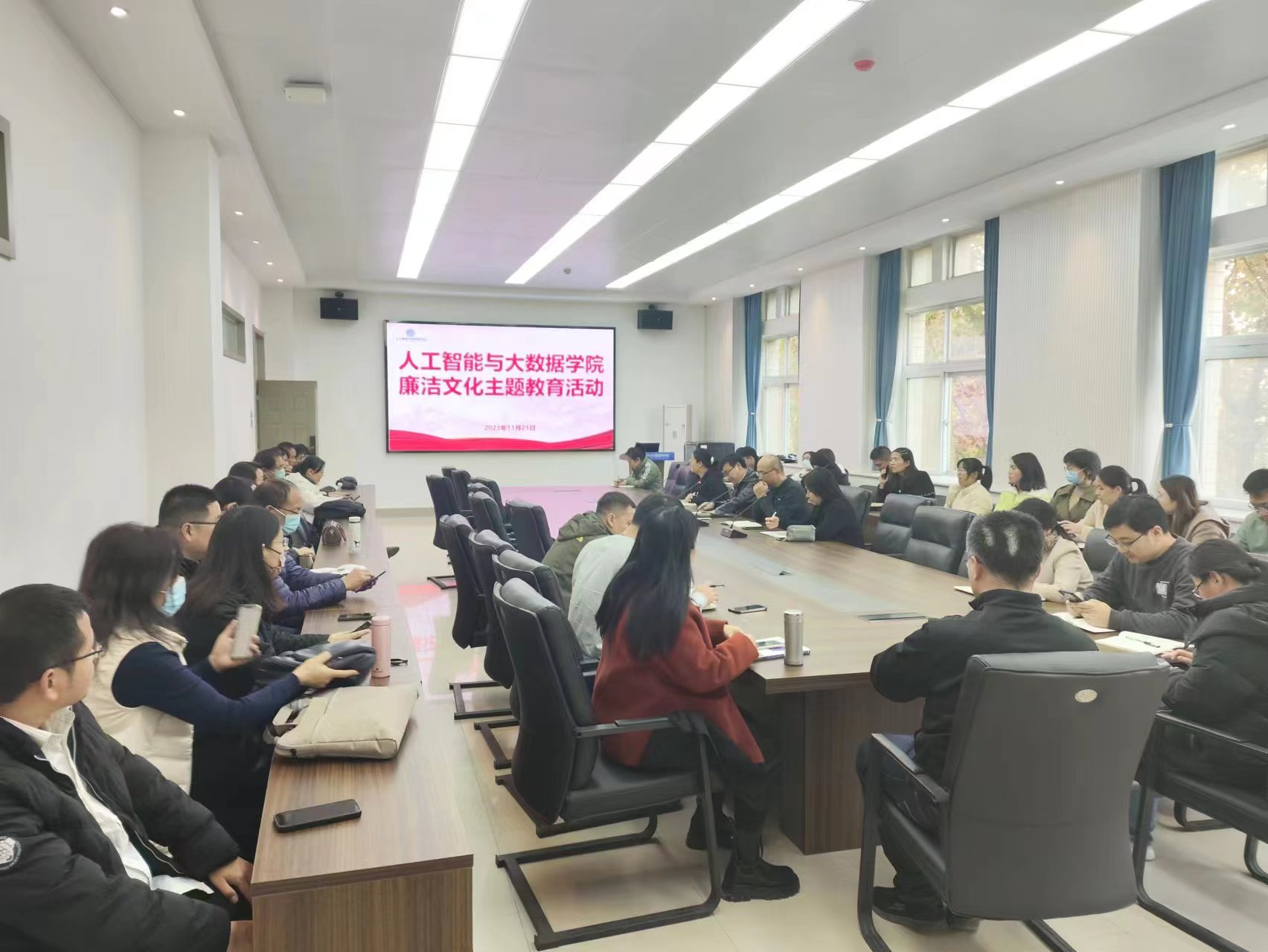 在6369会议室开展廉洁文化教育活动。学院全体教职工参加活动,活动由院党委书记杜鹏主持。