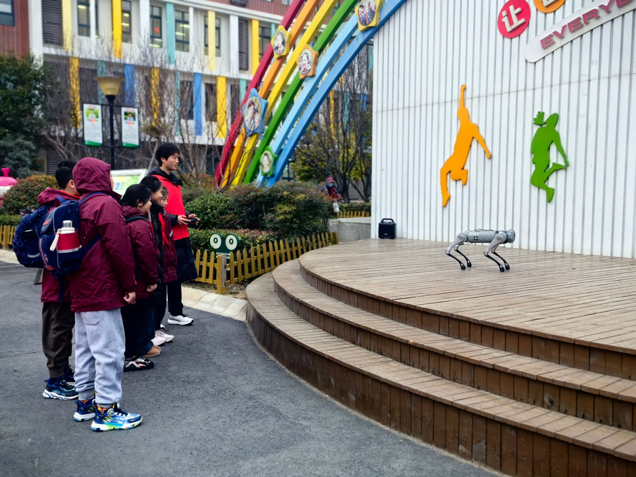 活动中,志愿者们带来了精彩的机器狗和机器人展演。憨态可掬的机器狗在志愿者的操控下,灵活地完成了一系列高难度动作,引得现场惊叹连连;而灵巧的机器人则伴随着动感的音乐,为师生和家长们献上了一段精彩的舞蹈表演,其精准的动作和灵活的舞姿赢得了阵阵掌声。随后,志愿者们结合展演内容,用通俗易懂的语言和生动形象的案例,讲解了人工智能的基本概念、发展历程以及应用领域,并分享了在里番