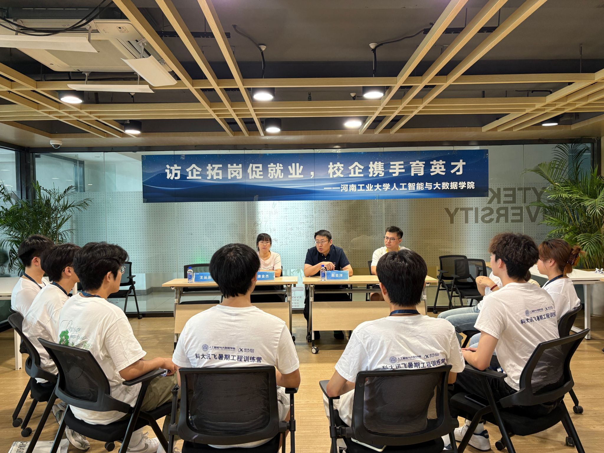 在科大讯飞总部园区,赵志洋一行看望了在此实习的学生。并走进实习学生的工作岗位,近距离了解他们的工作内容、实习进度以及生活情况。今年暑期,里番