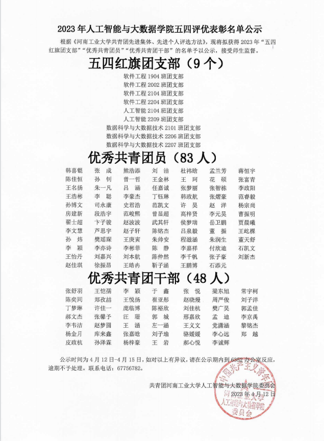 2023年里番 五四评优表彰名单公示