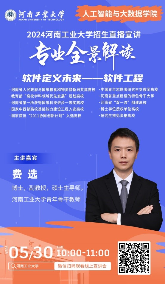 人工智能产业学院,是河南省唯一人工智能现代产业学院。学院拥有软件工程、人工智能、数据科学与大数据技术3个本科专业,其中软件工程通过中国工程教育专业认证,并入选第一批国家一流专业建设点。