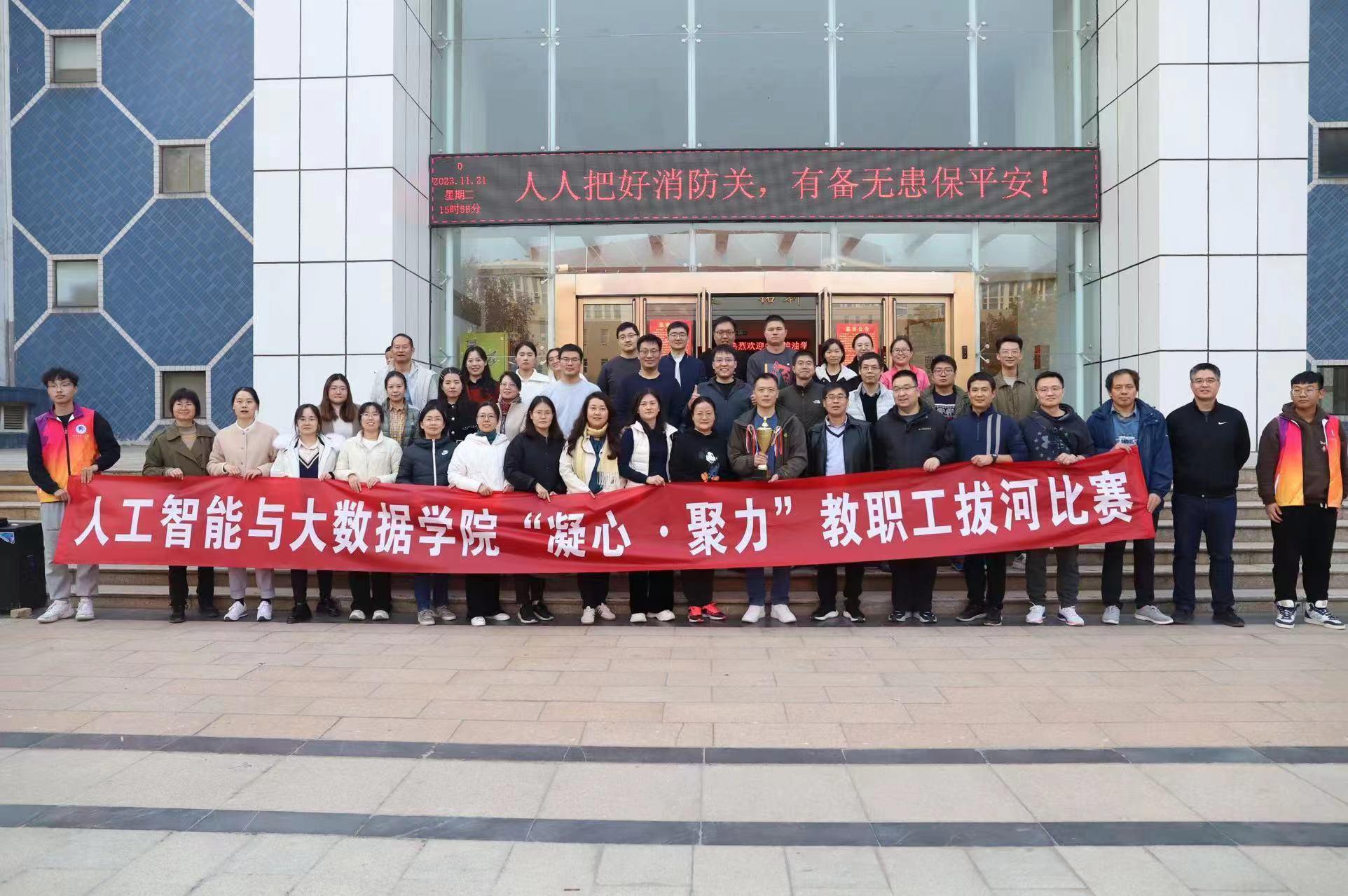 工会于11月21日下午在惟学楼前广场举办“凝心·聚力”教职工拔河比赛。