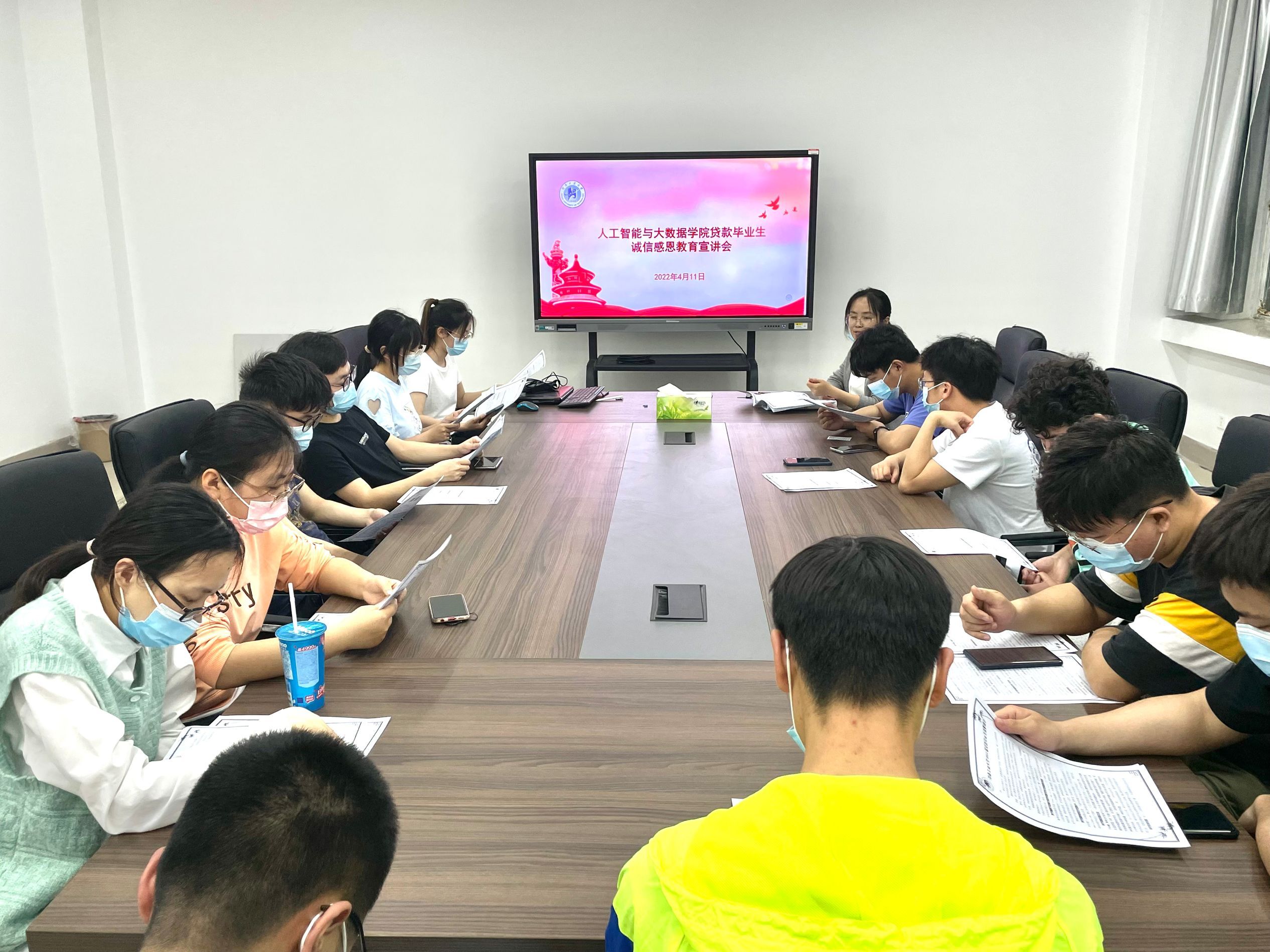 会议开始,说明了贷款系统线上审核及修改个人信息的流程,并强调了毕业确认工作流程的重要性,给大家发放了纸质版《里番