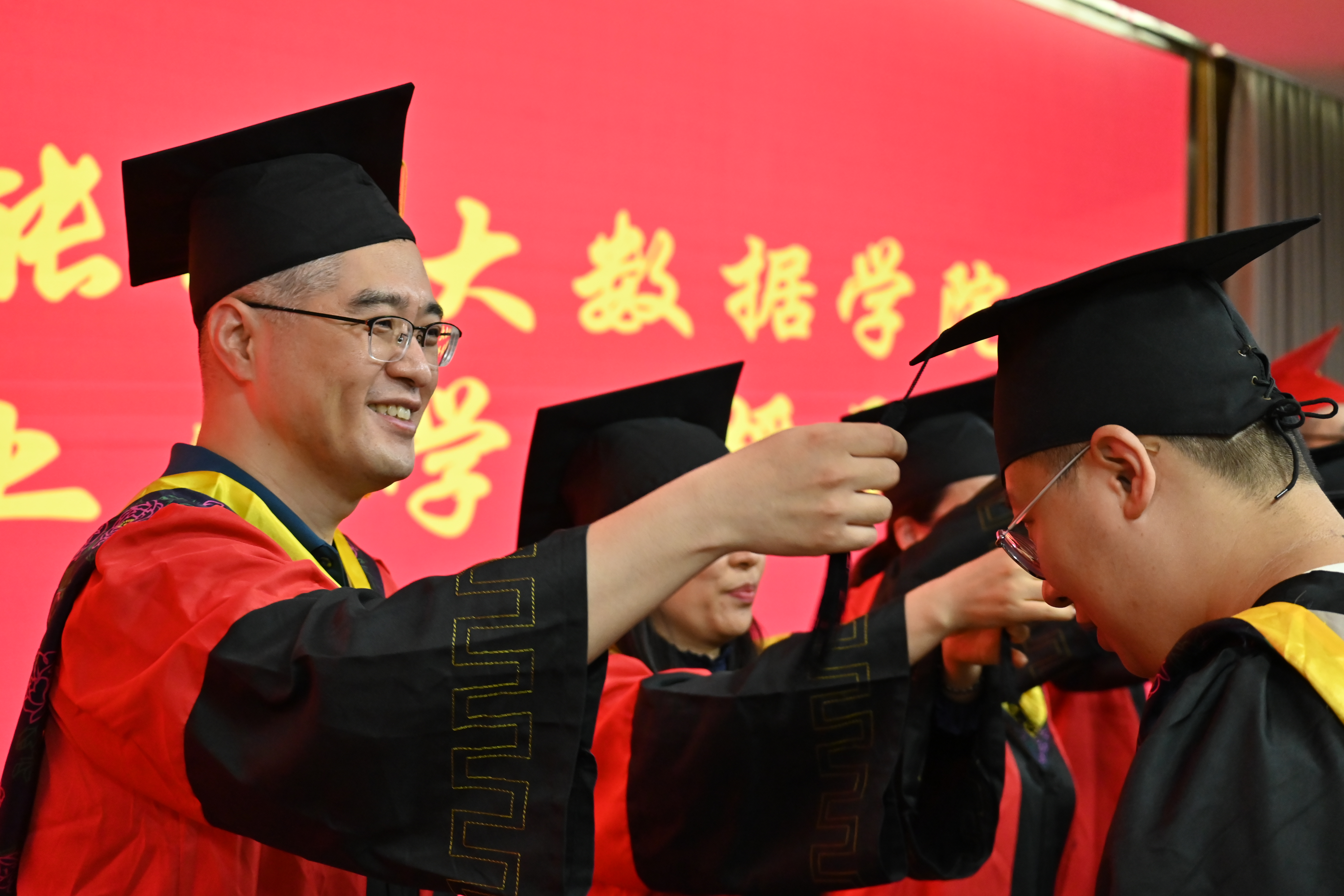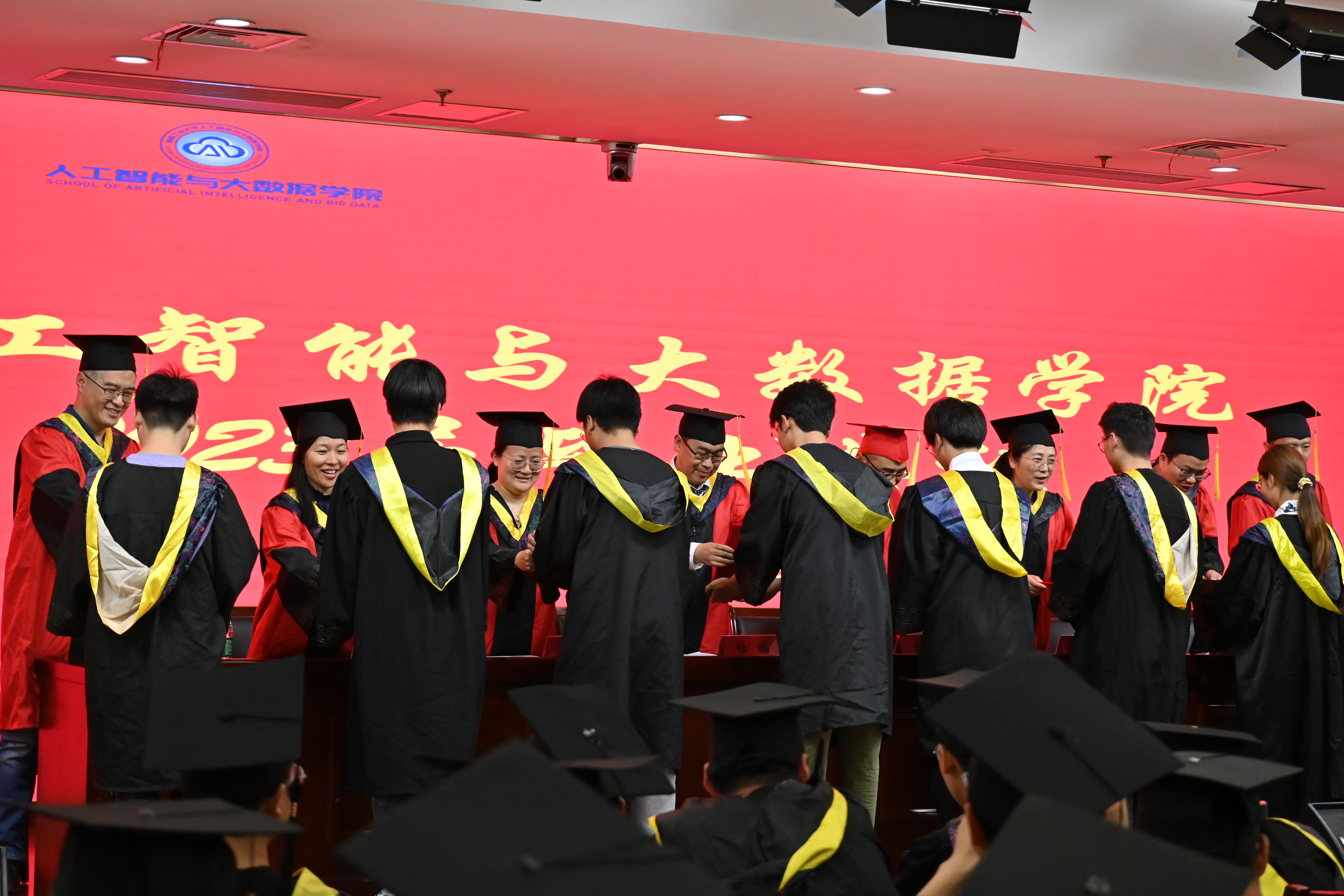 最后,在里番 校歌的激昂旋律中,学院领导老师为毕业生拨穗正冠,合影留念。