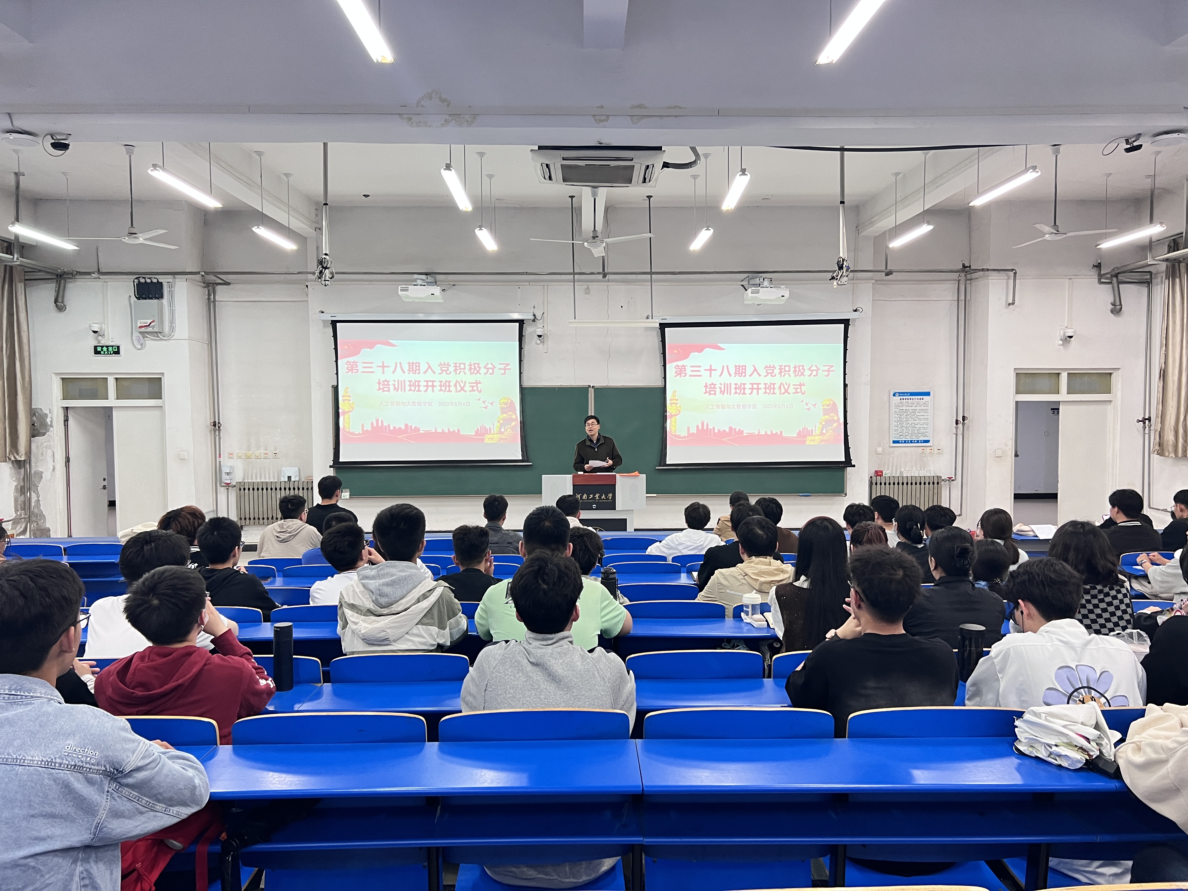 会议伊始,全体成员起立,奏唱国歌,行注目礼。本次开班仪式在高昂的歌声中拉开序幕。分党校校长、学院党委书记杜鹏致开幕词。杜书记强调,入党积极分子培训是每一位追求进步的学生的必修课,也是接受党的思想熏陶、理论教育的重要途径。并提出三点要求,第一要讲理想,坚定信念,勇做理论学习的标兵。要从百年党史中感悟马克思主义真理和共产主义信仰的伟大力量,做信念坚定的青年马克思主义者。第二要讲情怀,为民奉献,勇做无私奉献的表率。青年大学生必须要有为民服务情怀,在党和人民最需要的时刻冲得出来、顶得上去。第三要讲本事,提升能力,勇做综合素质突出的标杆。要努力提升理论素质、政治素质和专业本领,坚持理论与实践相结合,做到知行合一。最后他希望同学们能好好珍惜这次难得的学习机会,端正入党动机,提高思想政治觉悟,争取早日加入党组织,成为一名合格的共产党员。
