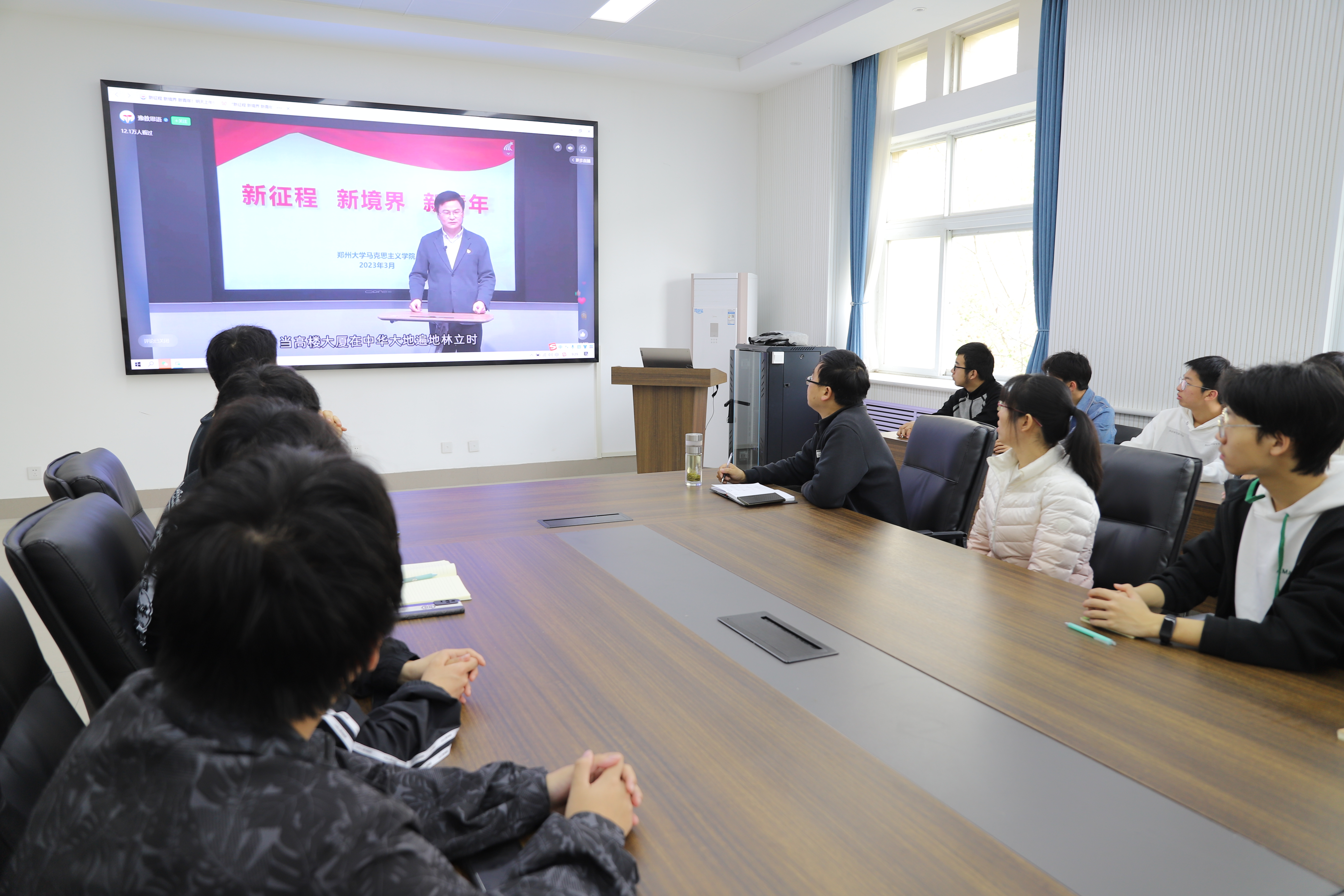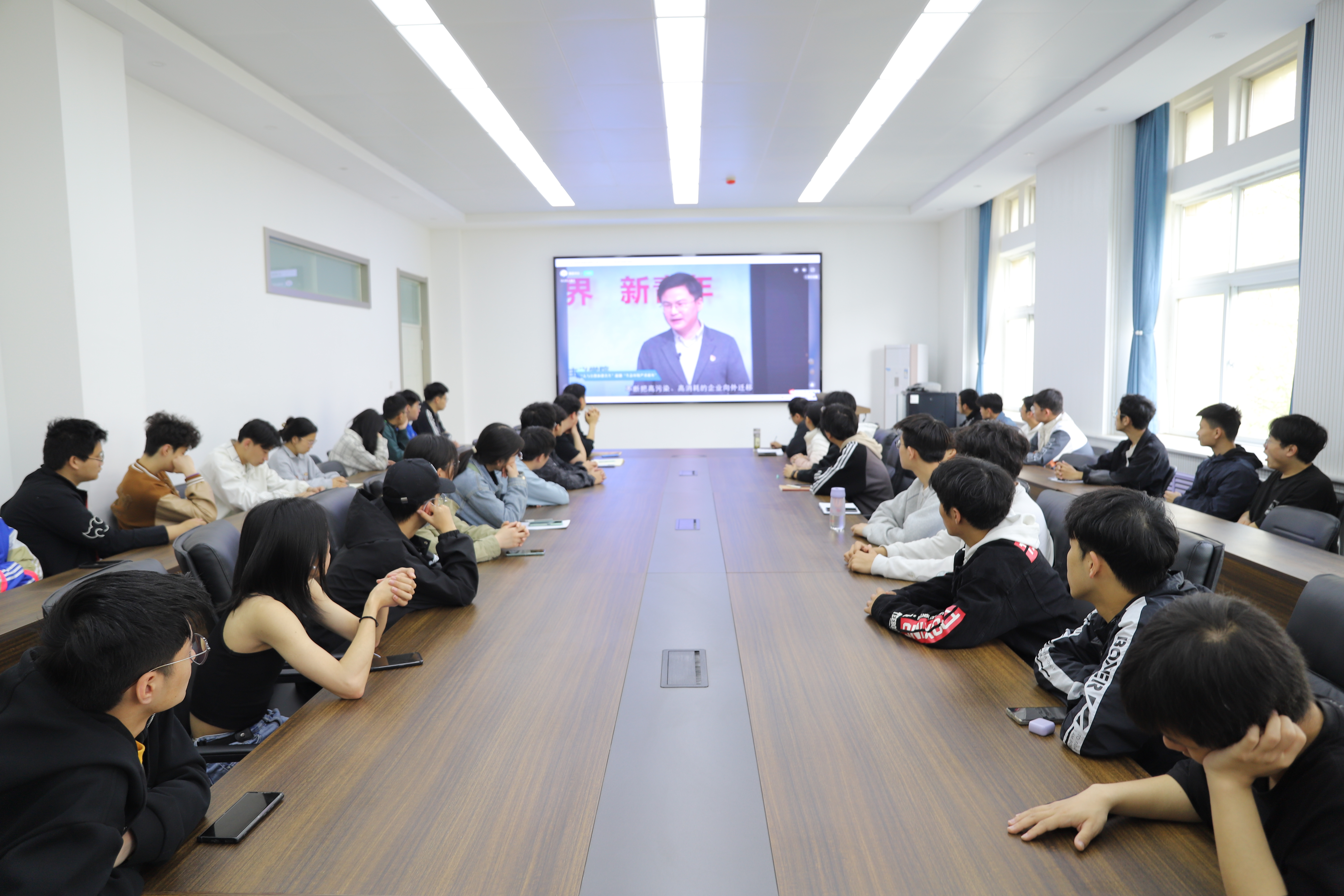 组织各班学生骨干在6369会议室观看《新征程 新境界 新青年》主题思政公开课直播视频,其他各年级1800余名学生通过视频直播实现了同步观看与学习。学院党委书记杜鹏、辅导员以及各班学生骨干参加本次活动。