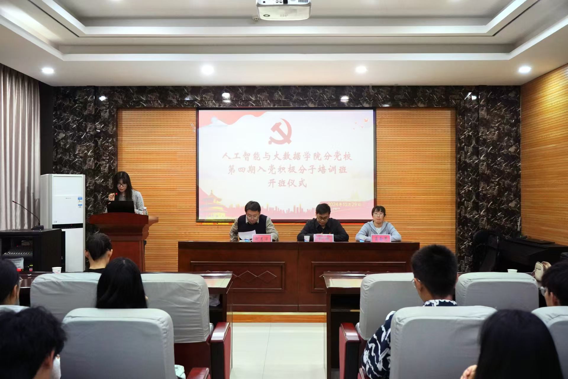 为提高入党积极分子的思想政治觉悟和理论水平,深化对党的认识,10月29日,里番 分党校在6228会议室举办第四期入党积极分子培训班开班典礼。学院党委书记、分党校校长杜鹏,党委副书记赵志洋和各学生党支部书记参加典礼。典礼由学院团委副书记郑帅主持。马克思主义学院院长李海涛教授受邀为本期144名入党积极分子学员讲授专题党课第一讲。