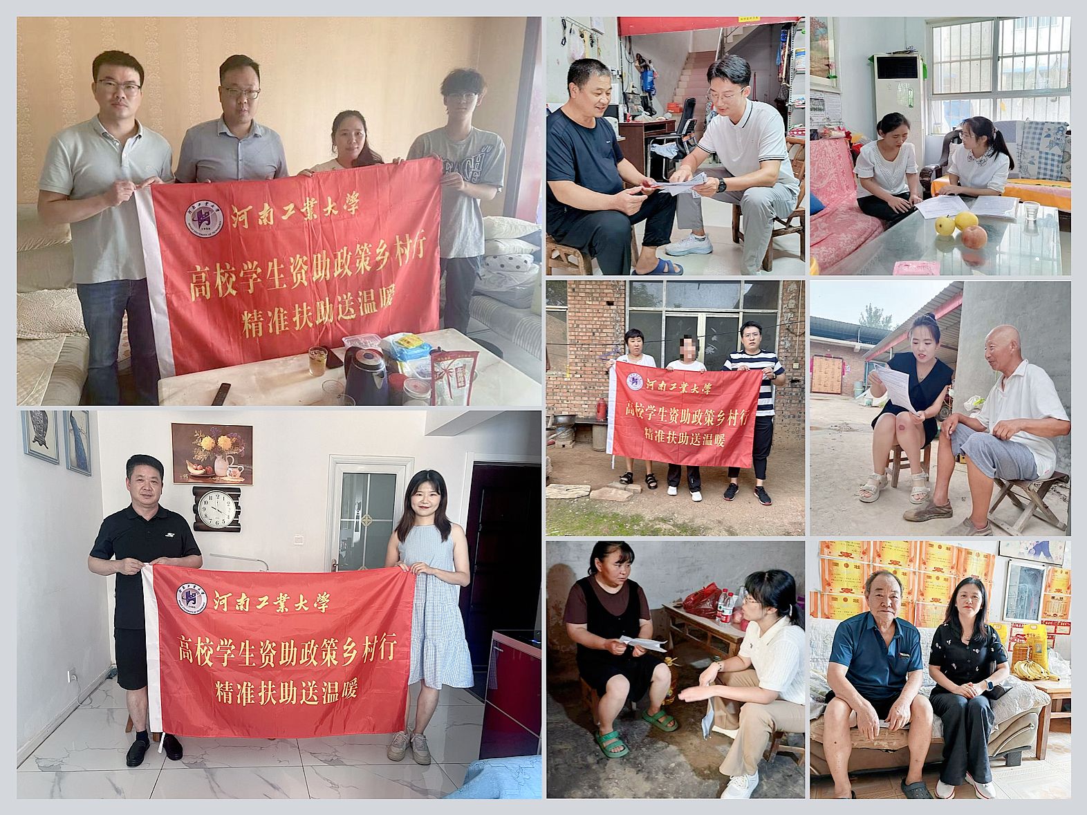 学院结合实际,共组建5支队伍,前往省内9地对30余户家庭经济困难学生进行实地走访。在走访中,不但有物资的实际资助,更重要的是与家长开展深入交流,宣讲国家和学校的资助政策、反馈学生在校的学习生活情况等。面对学生家长的疑问,每一位走访教师不仅是宣讲者,也是引路人,结合学生实际,给予考研考公、就业、参军入伍、西部计划等未来发展的参考意见,鼓励学生做好学业规划,找准人生定位,在资助的基础上给予更多关爱和指导。在烈日酷暑下,走访团队到留守儿童家庭、经济困难家庭进行资助政策宣讲,主动倾听他们的心声,帮助困难学生顺利完成学业,队员们通过面对面交流、分发宣传小册子等方式,结合案例进行答疑解惑,助力资助政策“户户知、户户懂”。